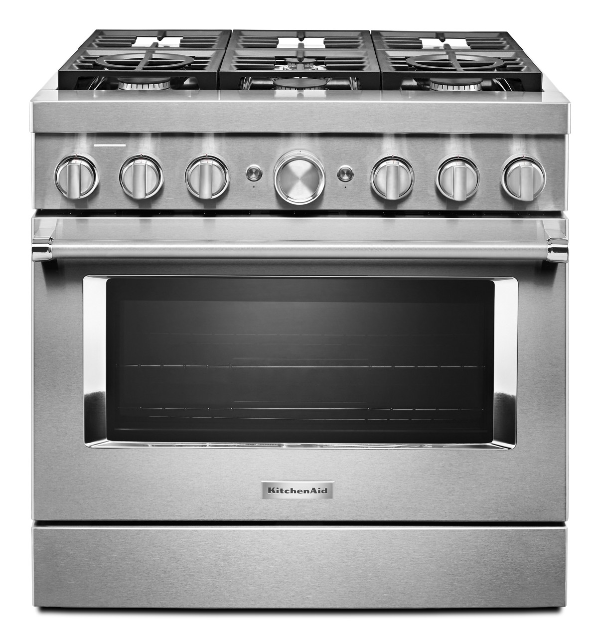 Expand your skills with a 36-inch KitchenAid® Pro Style Range with 6 burners. This dual fuel range combines a gas cooktop with the even baking of an electric oven. Two 20,000 BTU Ultra Power™ Dual-Flame Burners offer the power and precision to successfully sear, simmer, stir-fry and saute´. Even-Heat™ True Convection helps you achieve more consistent baking and roasting.Read More